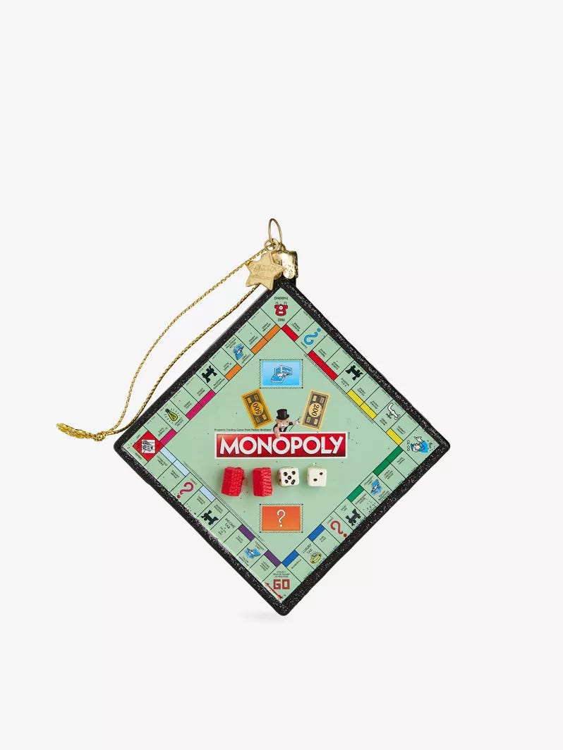 Juro y prometo que es lo último que digo sobre la Navidad en esta newsletter, hay que tener algo de autocontrol, pero es que el otro día me entusiasmé con la colección de adornos para el árbol de Selfridges. Se lo mandé a mi amiga Ana, que ha vivido en Londres mucho tiempo, y ambas estuvimos hasta las 11 de la noche comentando a distancia. Acabamos, evidentemente, locas perdidas al llegar a este en concreto…